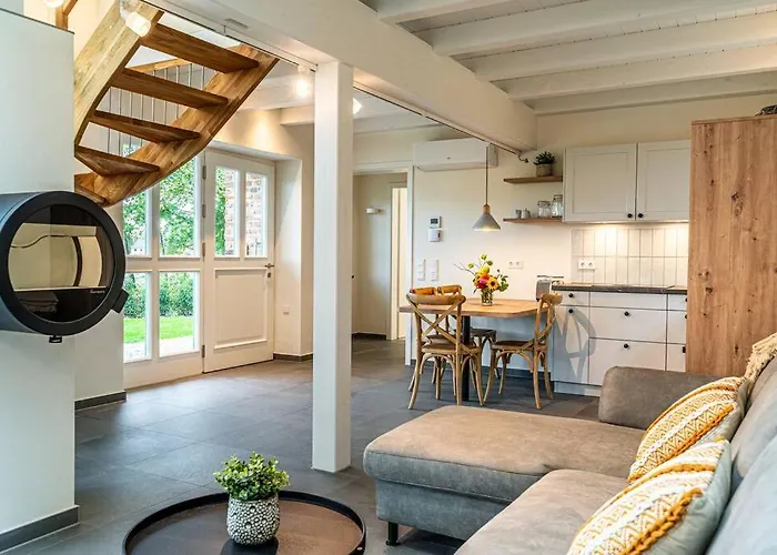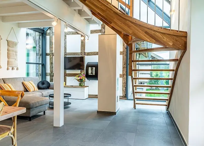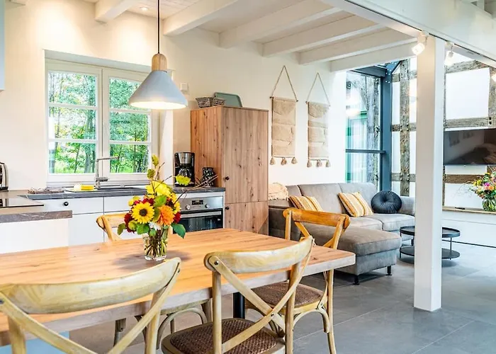 Z 2-pokojowego Ferienwohnung "Stellmacherei" Versmold roztacza się widok na ogród, a goście mają do dyspozycji jacuzzi i saunę. Schloss Harkotten Von Korff znajduje się w odległości 15 min samochodem od apartamentu o powierzchni 55 m², natomiast St. Petri Kirche znajduje się w odległości 3 km.